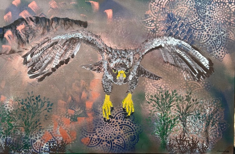 I am the proud owner of a Sherry L. Williams original. I asked Sherry to paint a Hawk that was going to represent my company. After our initial meeting, that started with my intentions and the goals of my company; the results in the next few weeks was nothing but outstanding.